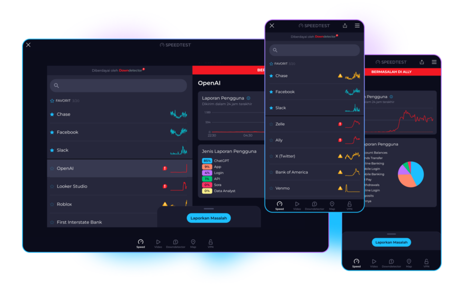 Pantau dan laporkan masalah pada layanan favorit Anda secara real-time dengan Downdetector, platform terpopuler di dunia untuk melacak gangguan dan koneksi bermasalah.